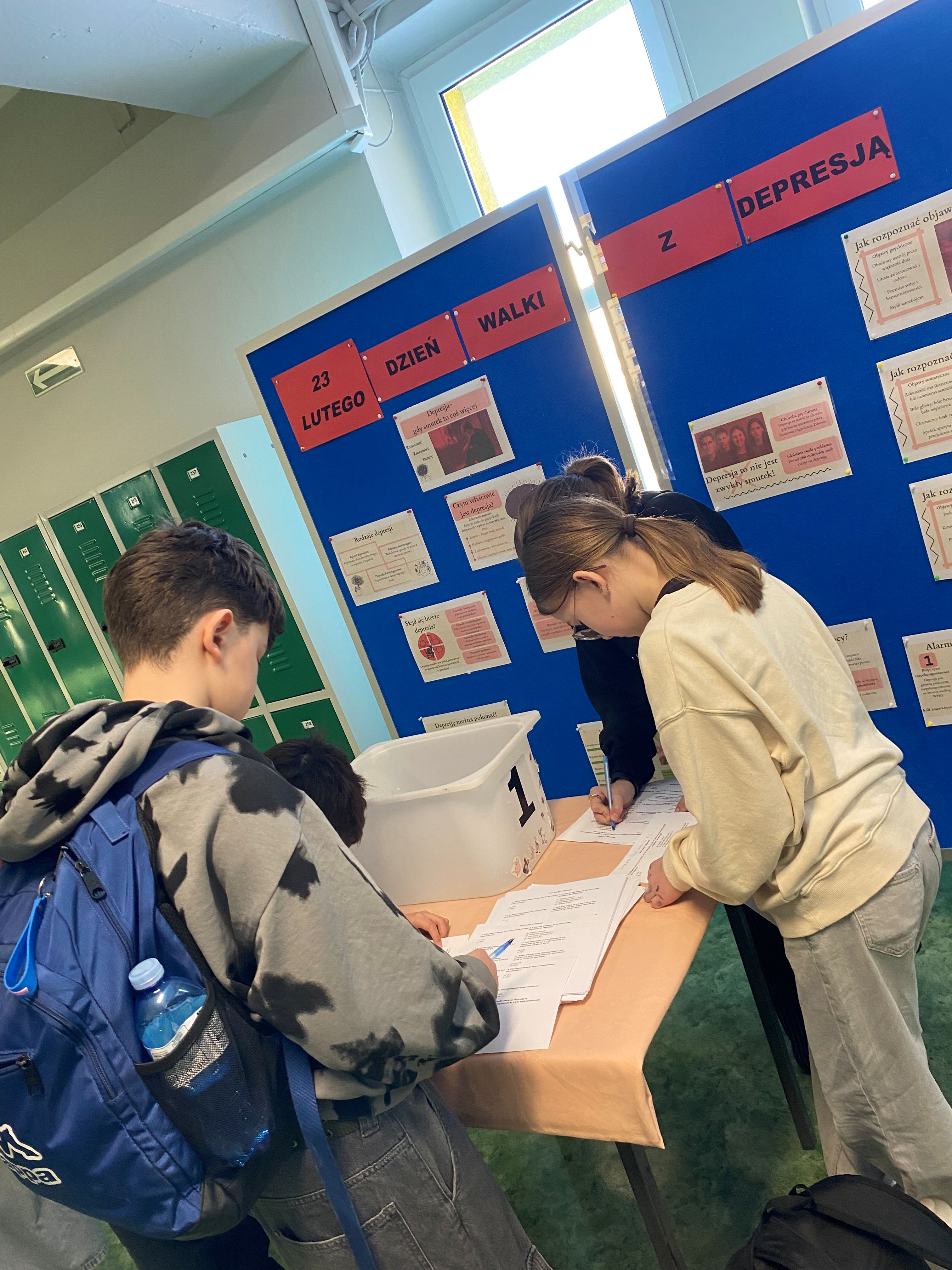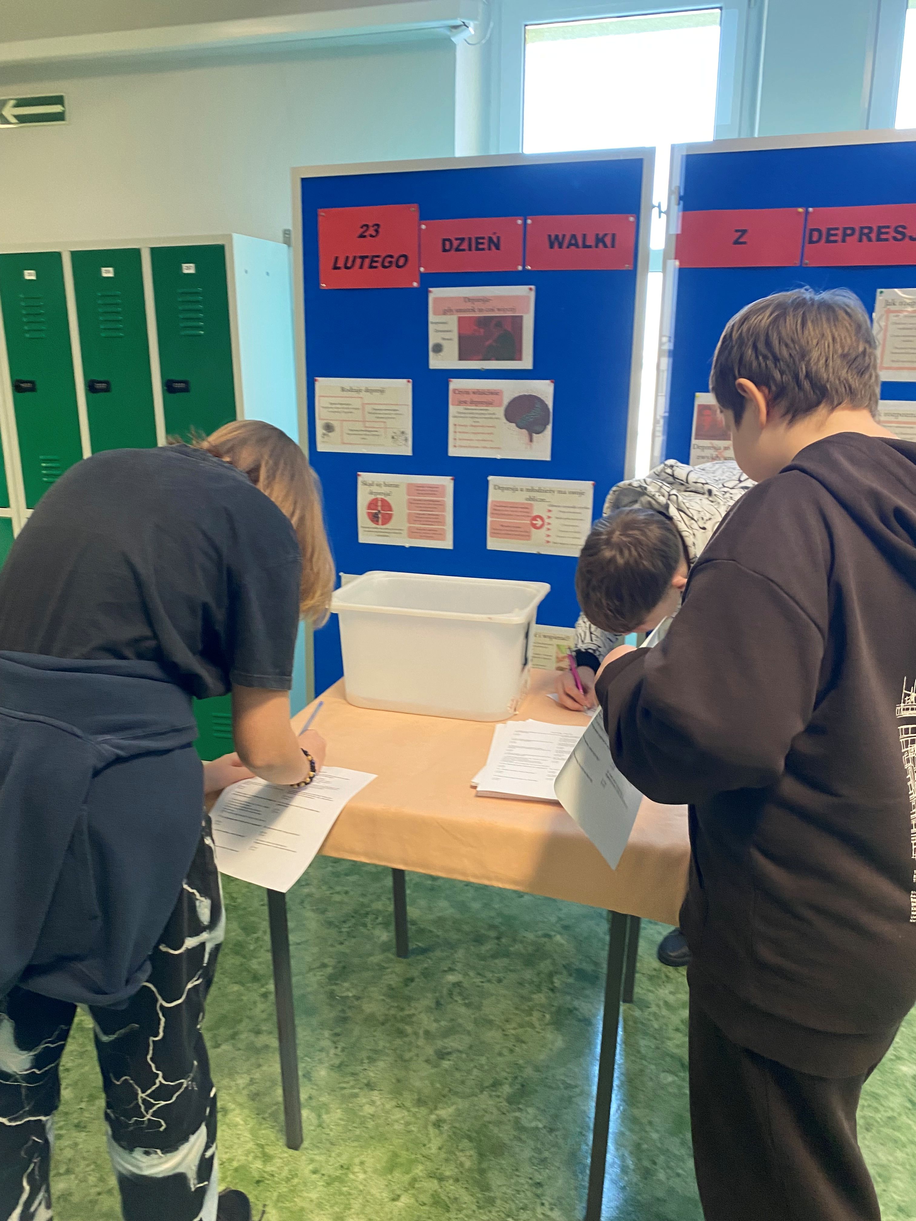 Dodatkowo dla uczniów klas 5-8 został zorganizowany test wiedzy, który pozwolił sprawdzić i utrwalić informacje dotyczące depresji oraz sposobów dbania o zdrowie psychiczne. Uczniowie aktywnie wzięli udział w wydarzeniu, wykazując się dużym zaangażowaniem i dojrzałością w podejściu do tak ważnego tematu.
