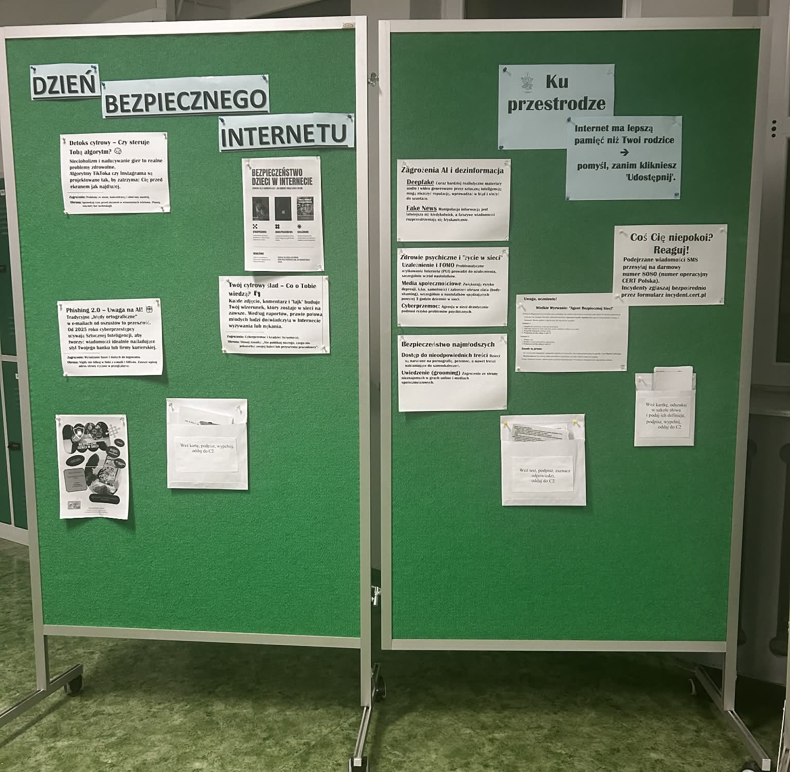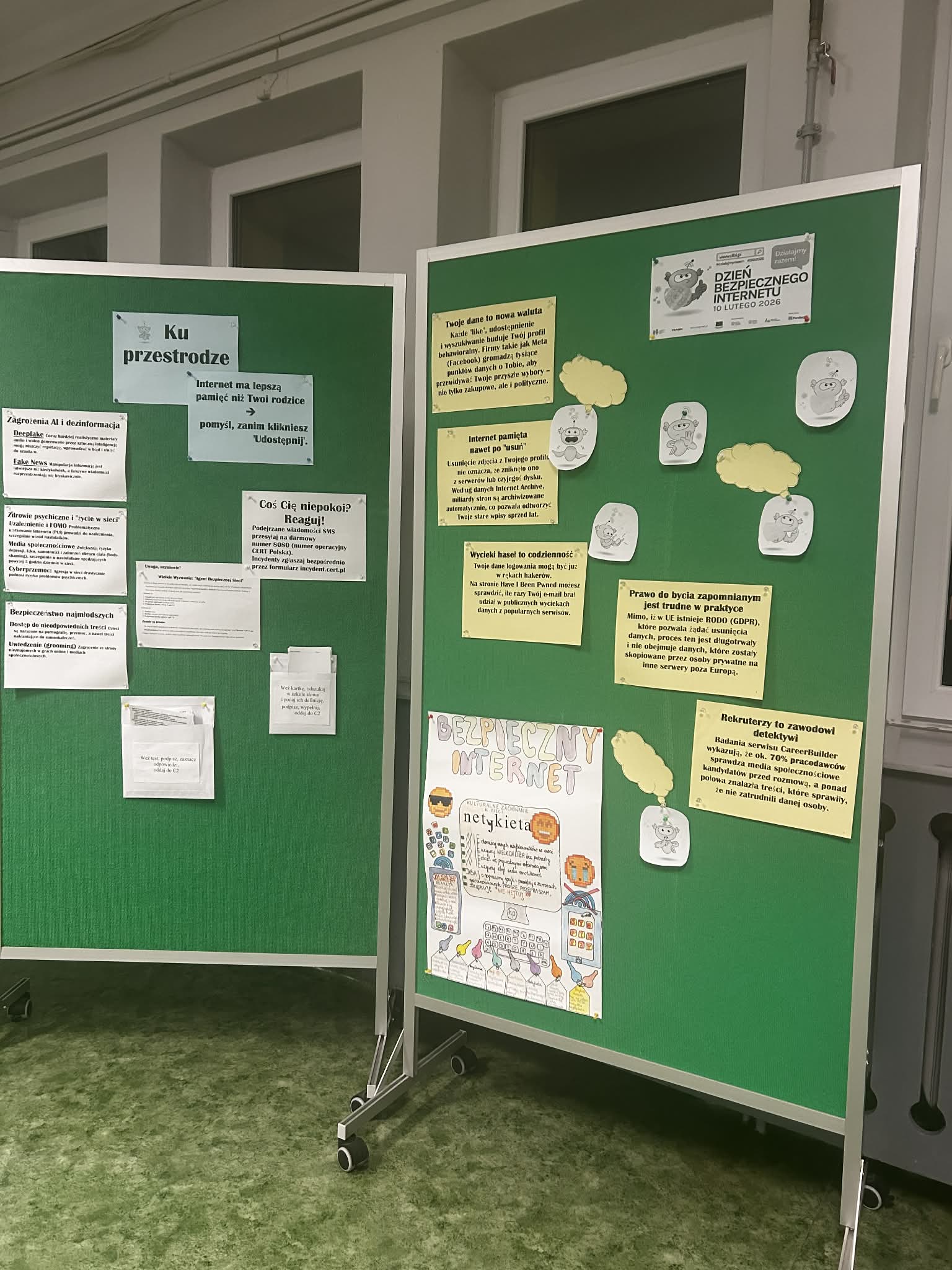 W obu budynkach nauczyciele przygotowali dla uczniów i rodziców ekspozycje przypominające o zasadach bezpiecznego surfowania w sieci.