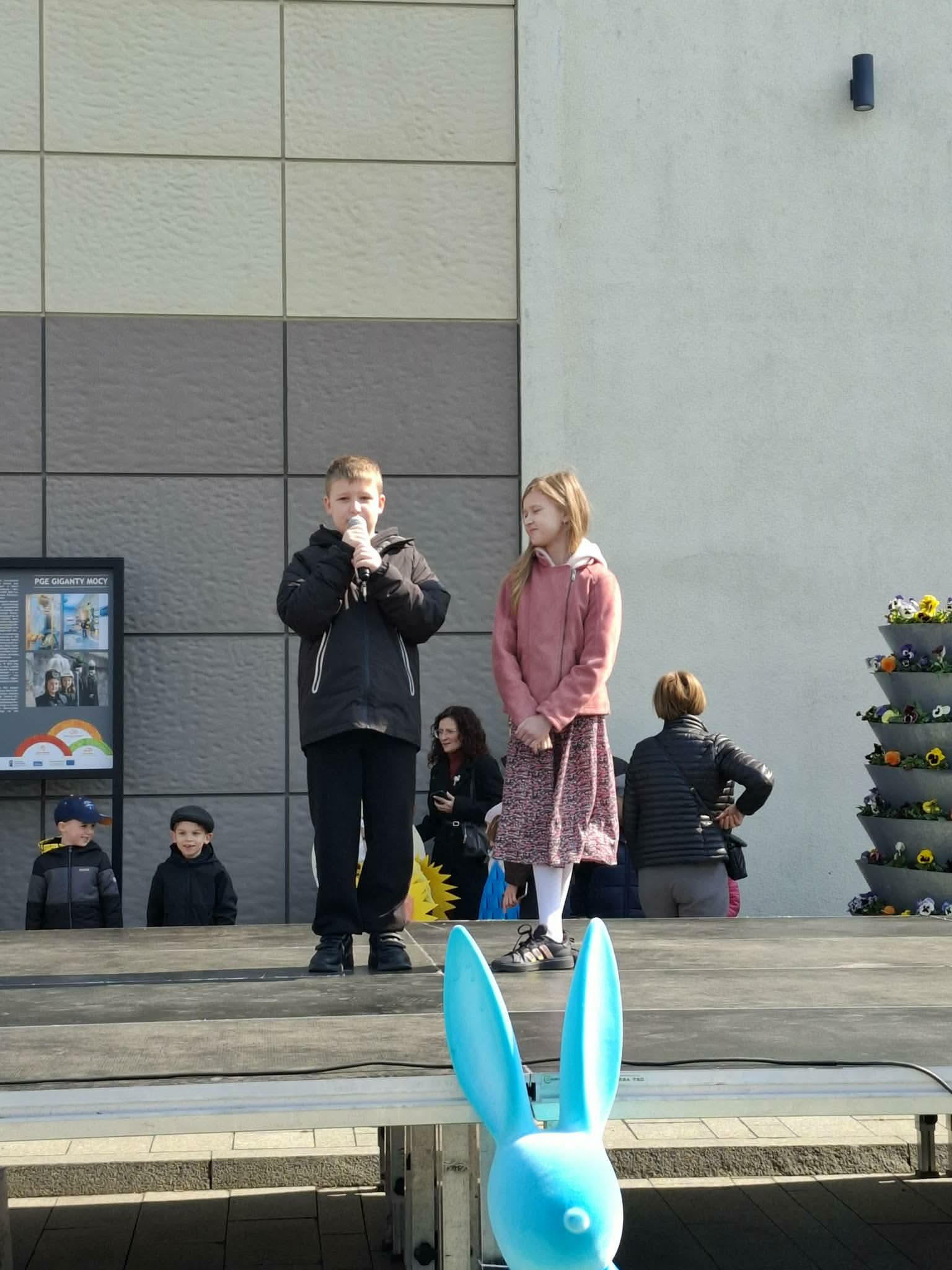 Uczniowie klasy 3c Łucja Wagner i Aleksander Piotrowski reprezentowali naszą szkołę na Pikniku Wielkanocnym