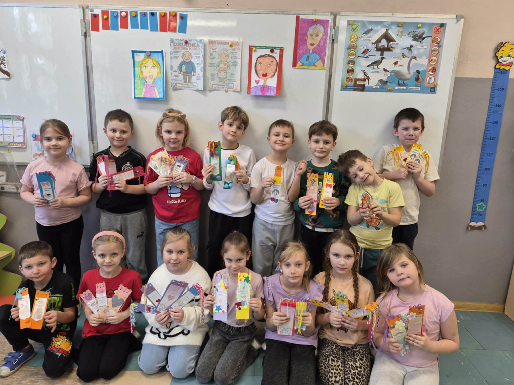Uczniowie z klasy 1 b przygotowali dla swoich Babć i Dziadków zakładki do książek.