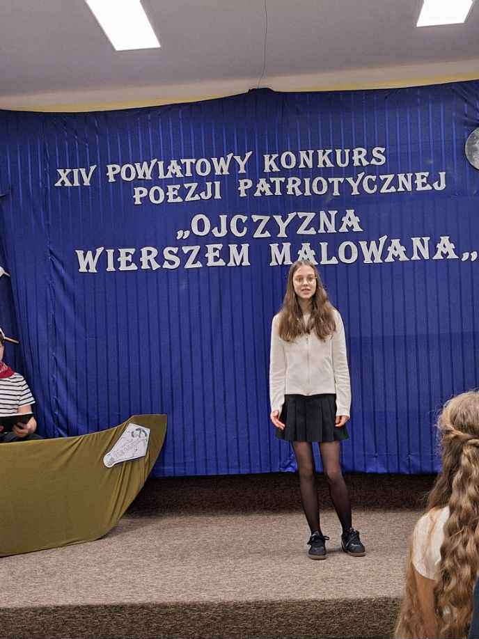 14 listopada 2025 roku, w Zespole Szkolno-Przedszkolnym odbył się XIV Powiatowy Konkurs Poezji Patriotycznej "Ojczyzna wierszem malowana".